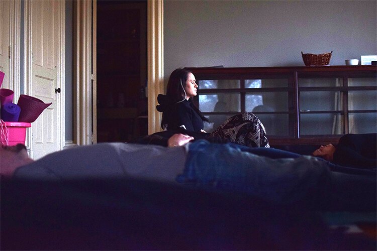 Flintside | Santiago Ochoa – Tavé Kuckhoff, recovery coach and Reiki practitioner at Serenity House of Flint, meditates during the house’s Holistic Recovery Hour.