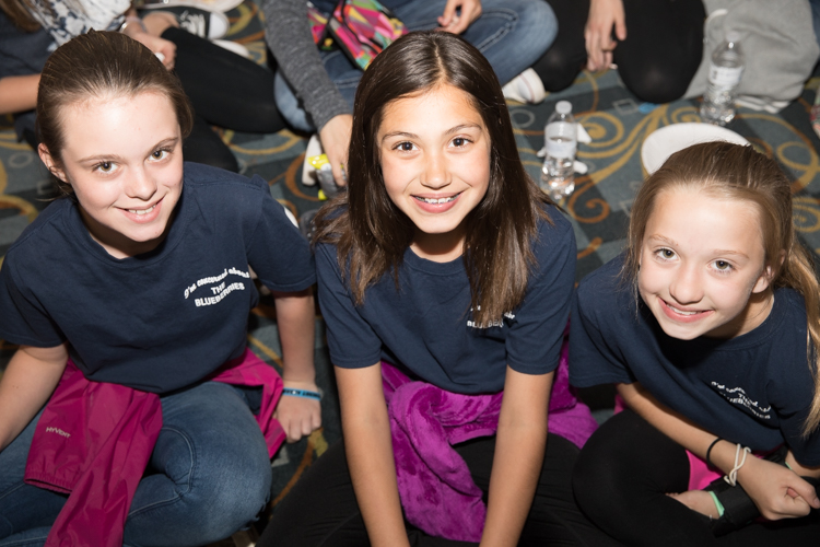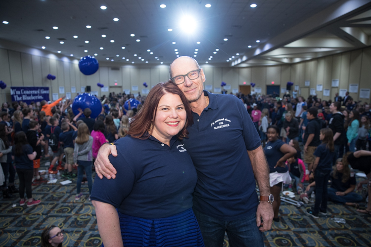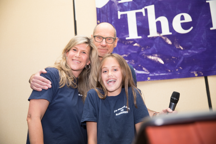 Mike Naddeo – Blueberry Founder Phil Shaltz congratulates teacher Kristie Philpott and fifth-grader Katie Roti, who won the Founder’s Award.