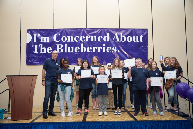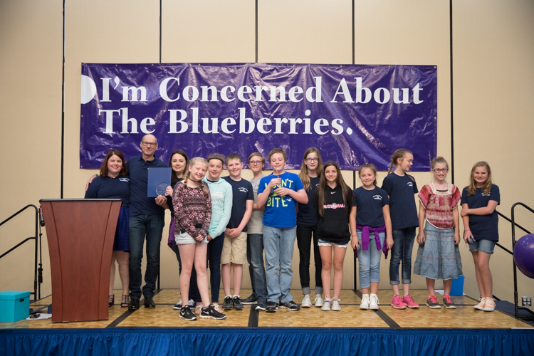 One special award is given to an adult mentor of a Blueberry Ambassador group. This year the winner is Maureen Shipley at Seymour Elementary in Flushing. All the awards are a surprise, and Shipley’s was at a second-grade field trip—so her award was accepted by another teacher instead.