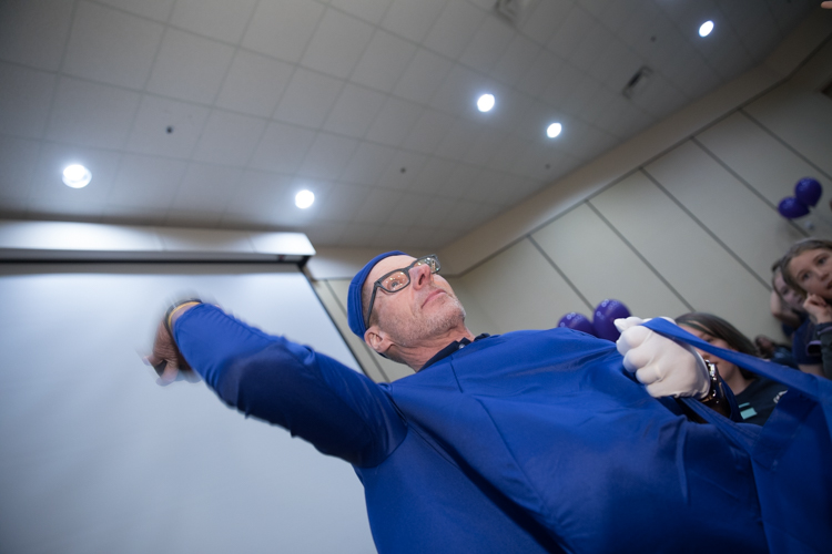 Mike Naddeo – Blueberry Ambassador Founder Phil Shaltz arrives to the party in a Blueberry suit. He also threw out Blueberry balls to the crowd of students.
