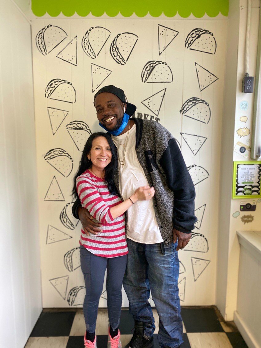 Inside, the customers have their own tribute wall — a spot for a “social media moment.” Customers are encouraged to pose for photos by a taco backdrop, and pictures are posted on A&G’s social media and in the store.