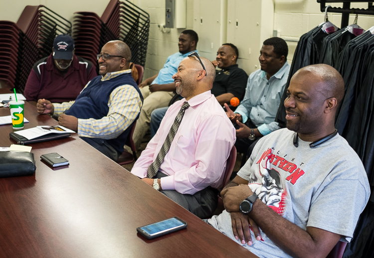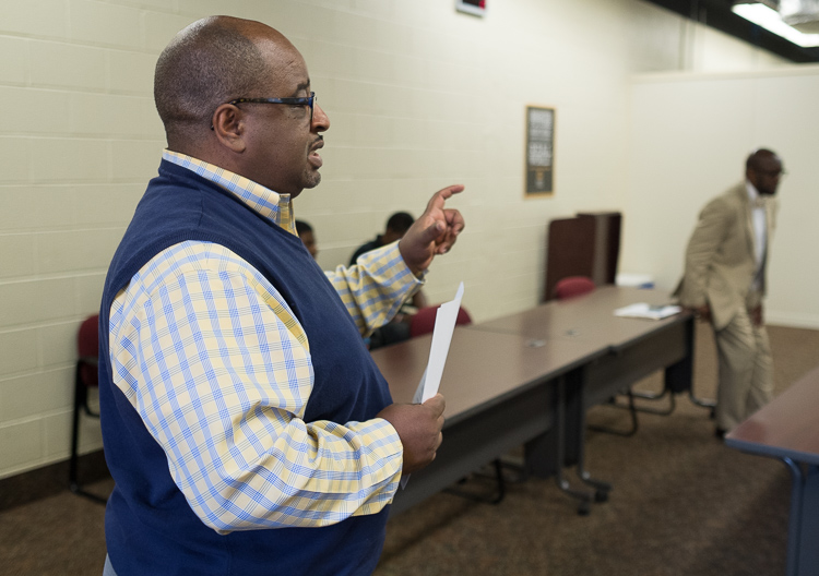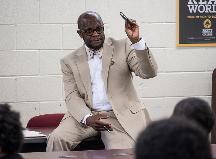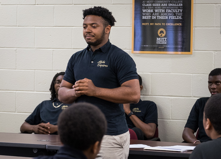 They typically meet in a Mott Community College classroom just off North Saginaw Street. The advisors are men of varying ages and professions who meet with the young African-American men who are Esquires.