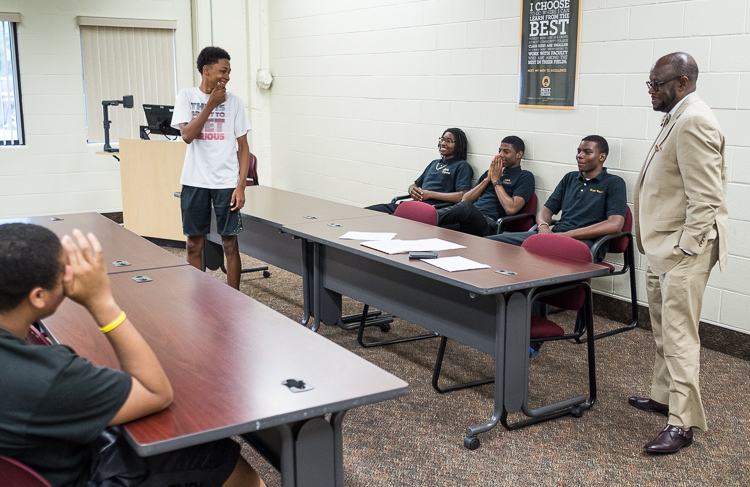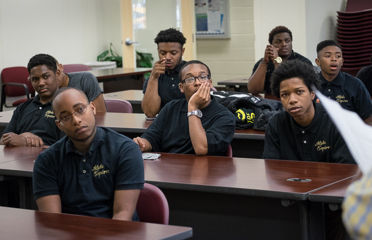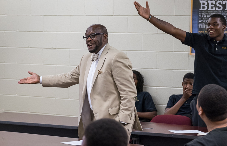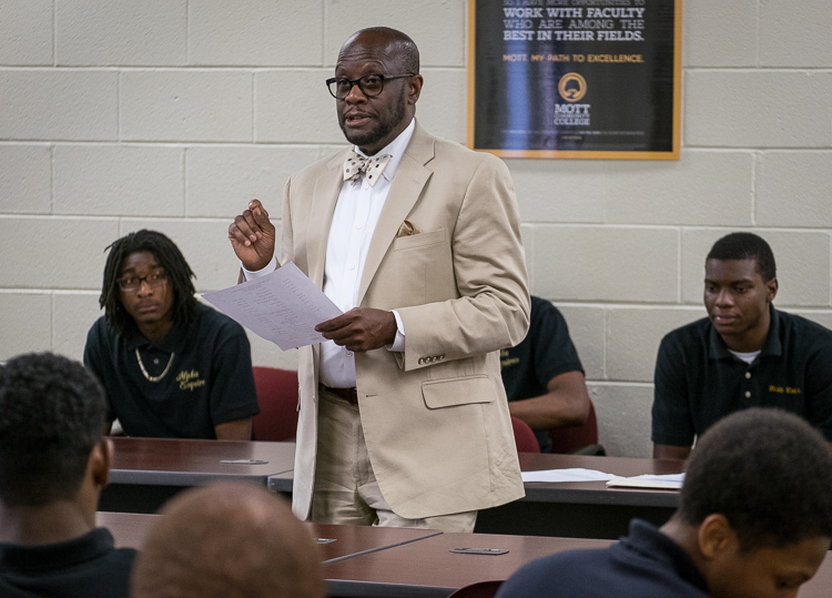 “We’re trying to instill in them the positive aspects of being a strong African-American man,” says advisor Sam Wells of Flint Township. “That encompasses an educational piece and a social piece. We have an etiquette workshop for them to round them out as young men and show them there’s a lot of positive things out there. You don’t have to buy into all the negative things you see.”