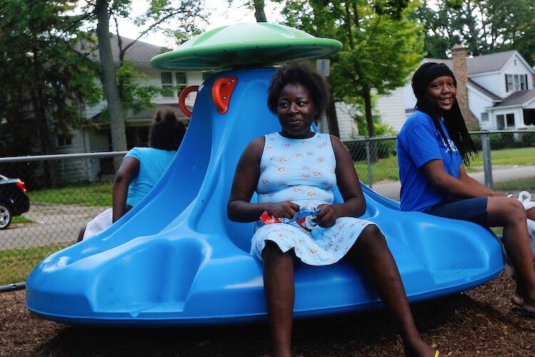 FLINT, Michigan—A trip to the park is now a simple walk across the street for Ceterra Williams, 11; Mariah Fisher, 15; and Natalia Williams, 9. The trio of girls have quickly made the newly renovated playground at Bassett Park their everyday hangout.