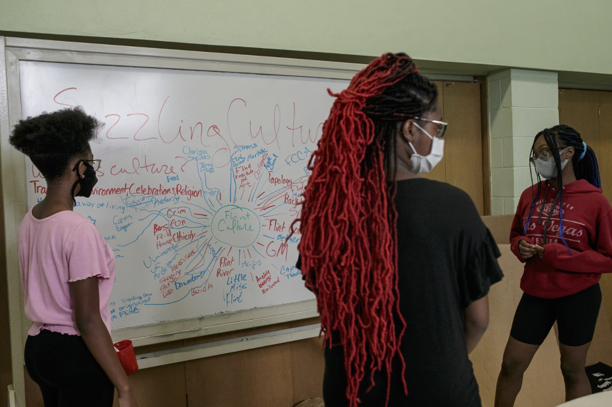 When I walked into Asbury Church to interview Sizzling Culture’s members, Desiree Duell, the director of community development, greeted me at the door. Her passion for the younger generation in Flint was readily apparent. After a quick introduction, she walked me downstairs to the room where the teens were actively brainstorming on the concept of culture. On a large dry-erase board in the front of the room, written underneath the question of ‘what is culture?,’ different ideas were listed: traditions, environment, celebrations, and religion.