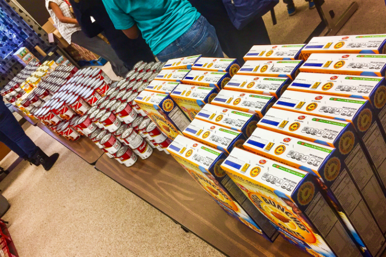 The food bank delivers the food to schools but it takes schools, parents and volunteers to get the bags ready for students every week.