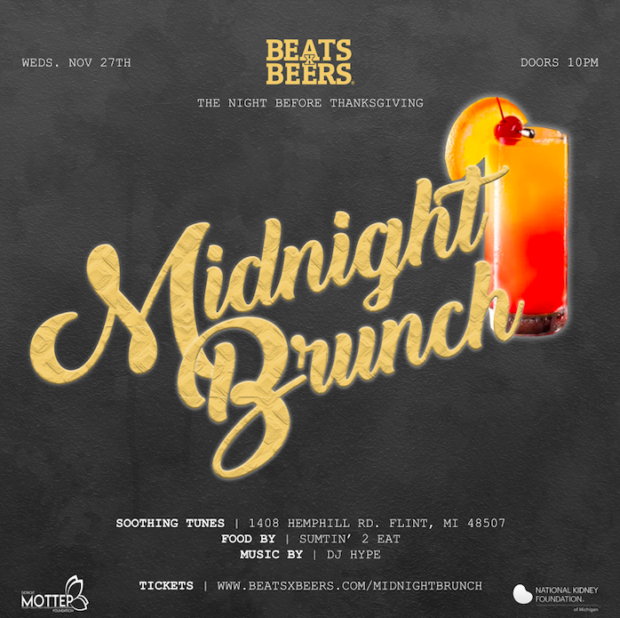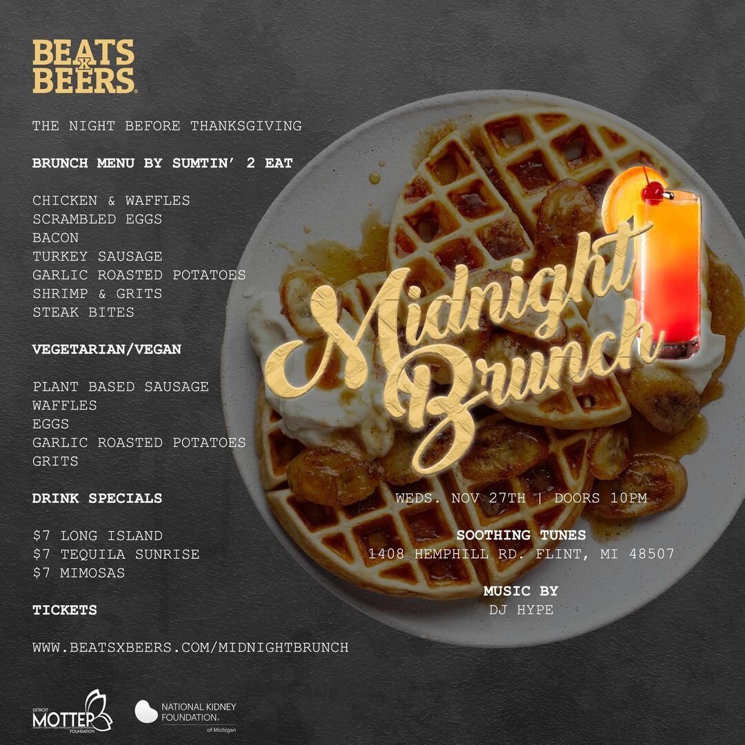 FLINT, Michigan — This Thanksgiving Eve, Beats x Beers is hosting its first-ever ‘Midnight Brunch’ to celebrate the holiday season with a mix of food, drinks, music, and fun.