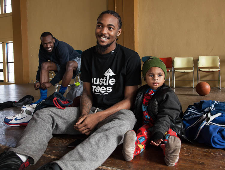 He is seated next to his father, Troy George, 23, of Flint, and some of his dad’s friends. He is never left alone, even when his dad rotates into the ongoing basketball game at Berston Field House.