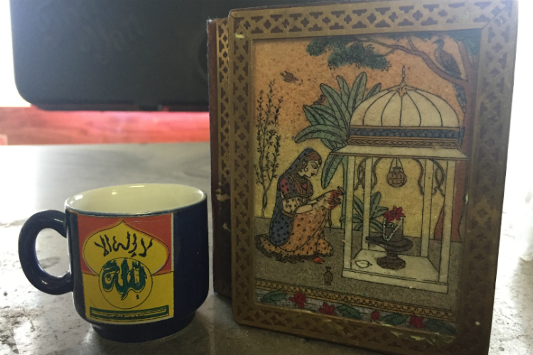 Walking over to the front window, Marwan motions to a small mug and intricate jewelry box with other assorted knick knacks. “This is my other favorite thing here in the shop, you see,” he says, pointing at the mug and box. “I’m not a very religious man, but many of my customers are. This box is a Catholic saint … and this cup says, ‘Allah.’ This says to people coming in, everyone is welcome.”