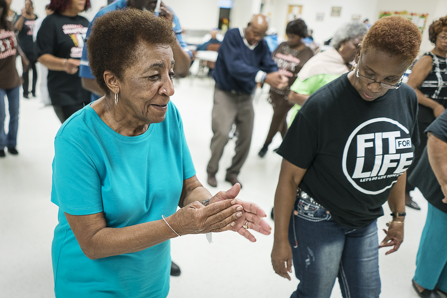 Tim Galloway – Flint residents Ruth Morris, 82, (left) and Queenella McGee, 66, dance together at the Hasselbring Senior Community Center. “I love coming because of these people,” Morris says. “They’re my sisters and brothers.”