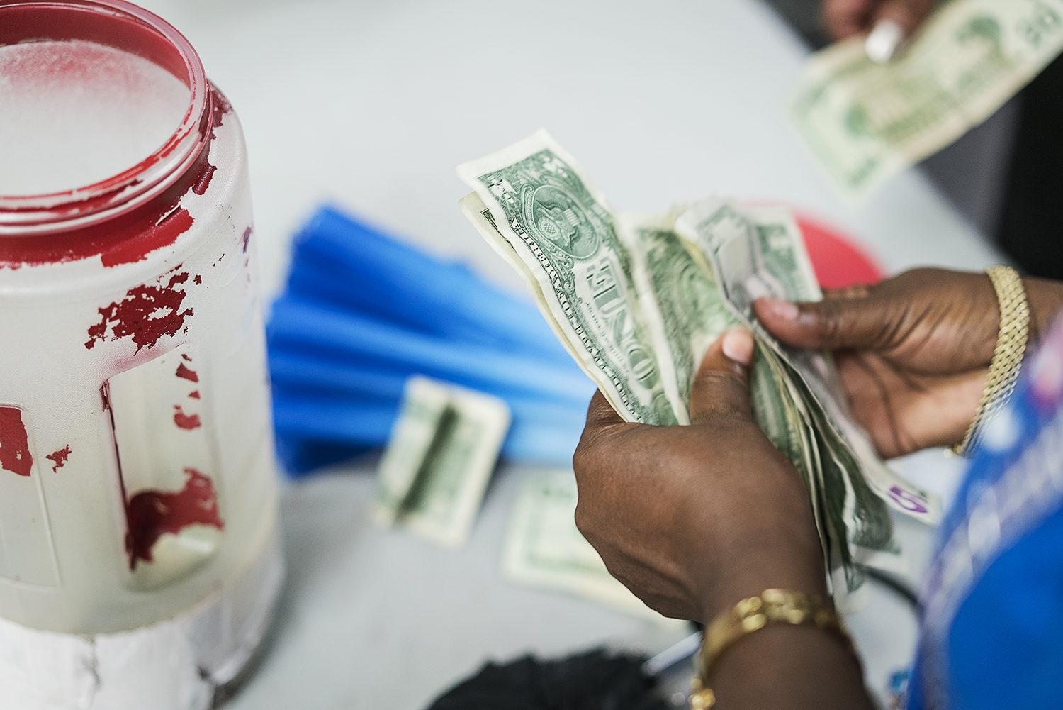 Tim Galloway – Bunny Jones of Flint counts donation money collected from the Hustlers. Gardell Haralson refuses to take any money from the center, insisting it be used for improvements instead.