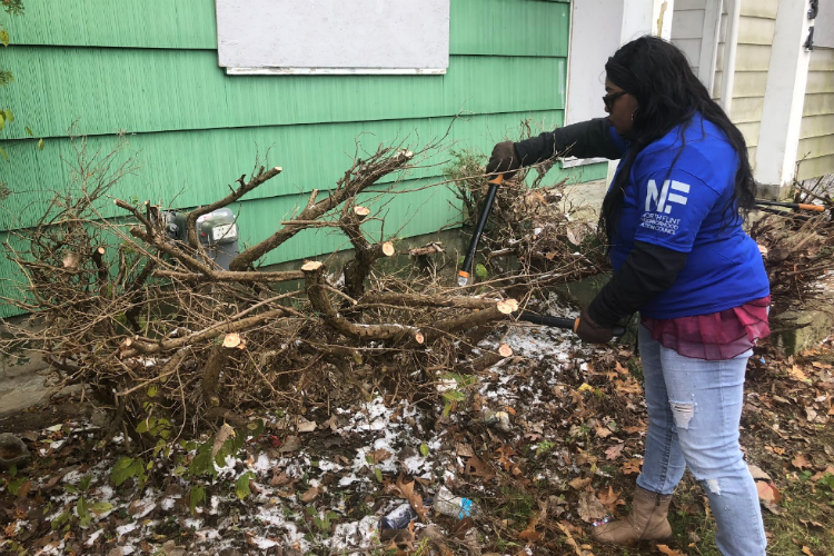 Working alongside them was My’a Smith, a volunteer through WOW Outreach. “When you clean up garbage, brush, board up a broken window, or cut some weeds, it makes me feel more like a change is happening — that something better for this area is possible,” she says. Smith, 20, also runs her own small nonprofit called My’as Closet that provides hygiene products, food, and clothing. “You get tired of hearing about how bad Flint is,” Smith says, picking up a bundle of weeds. “It feels good to be a part of something positive you can point to and say: That’s a change.”