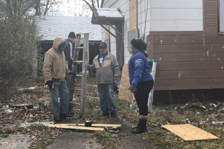 Working on Saturday are people from Hamilton Community Health Network, North Flint Neighborhood Action Council, WOW Outreach, North Flint Reinvestment Corporation, Ruth Mott Foundation, Davison Free Methodist Church, Our Savior Lutheran Church, LISC, WT Stevens and the Kagle Leadership Initiative.Â