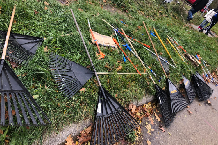 Groups of students also walked with rakes, bags, and heavy gloves to clear trash and debris from a dumping site near Foss Avenue Baptist Church. Throwing old bumpers, shopping carts full of trash, boxes, and rummage into a large dumpster placed by the Kagle Leadership Initiative from Kettering University.Â