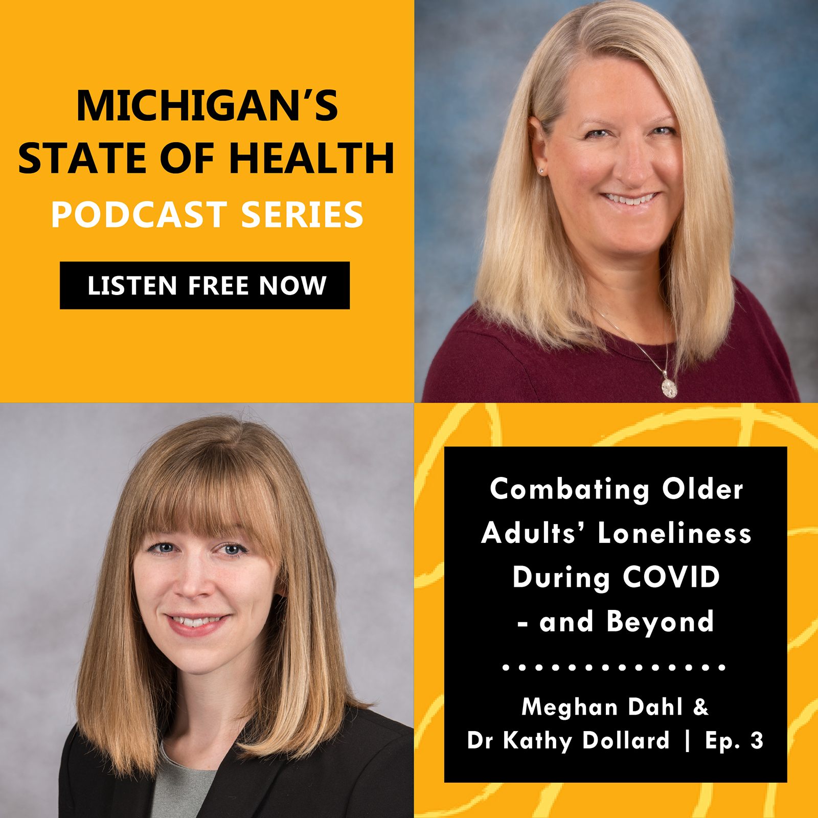 On this week’s episode of Michigan’s State of Health, we sat down with Dr. Kathy Dollard and Meghan Dahl of MidMichigan Health to discuss Bridge to Belonging, a program that they created – and then adapted during the pandemic – to help combat social isolation among older adults. Join us as we discuss how the pandemic raised awareness of isolation and other issues older adults face, the transformative effects Bridge to Belonging has had on program participants, and how to continue supporting older adults beyond the pandemic.
