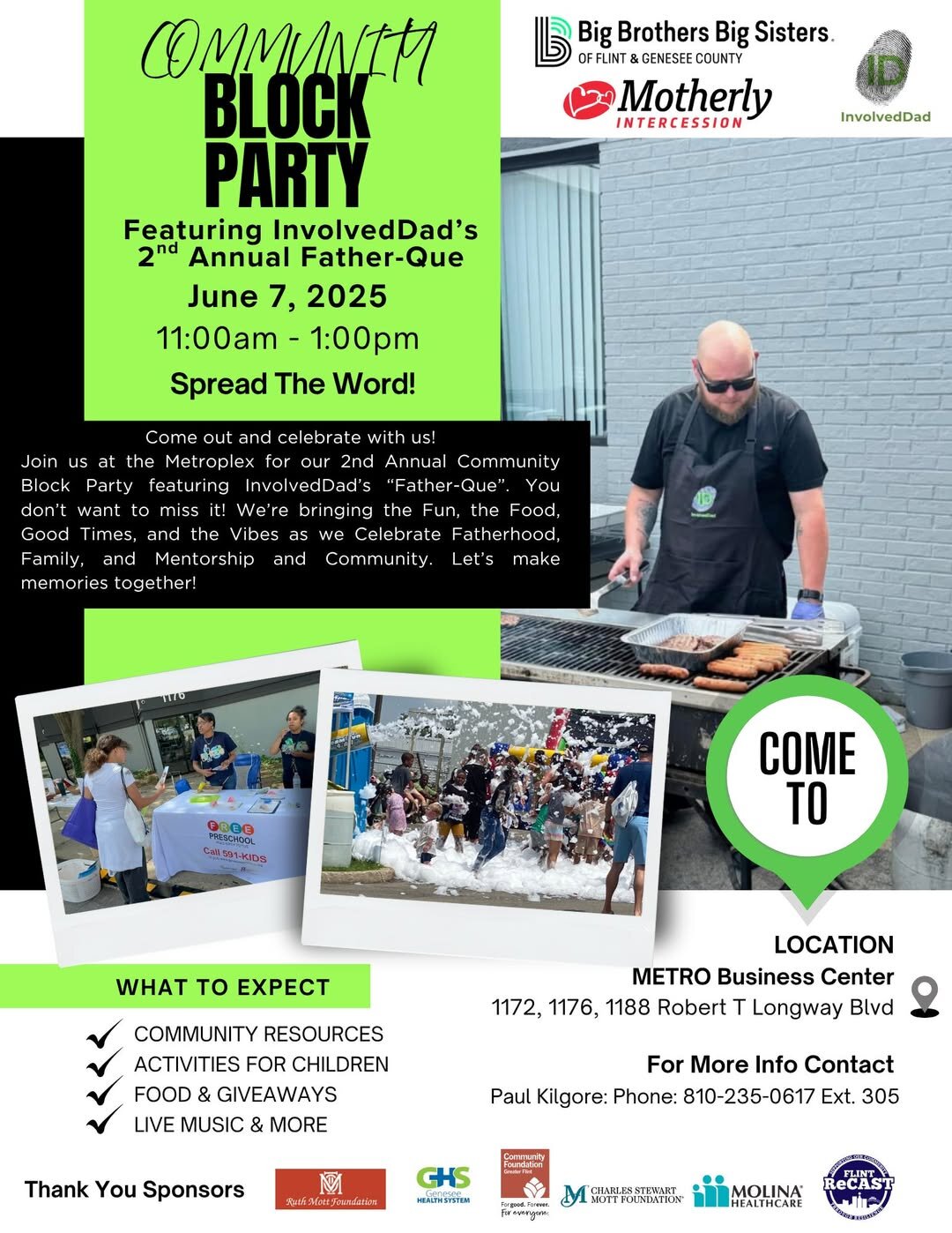 Organized in partnership by InvolvedDad, Big Brothers Big Sisters of Flint and Genesee County (BBBSFGC), and Motherly Intercession, the block party promises an afternoon of celebrating connection, community, and the importance of fatherhood and mentorship.