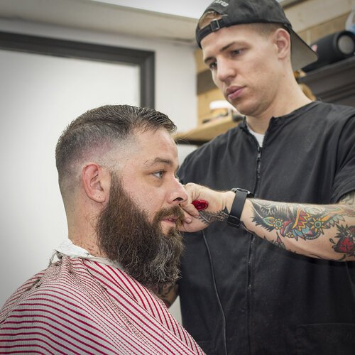 “I don’t know what we were doing prior to this, but I do know that now we’re way more streamlined and organized,” says Minock about the amount of haircuts booked per day. “It’s got to be pretty close. Both of us were booked solid for the first three weeks. I think I’m booked out for two more weeks, and Andy [Gatz, his co-worker] is at about 60% this week. We’re staying pretty booked, which is awesome.”