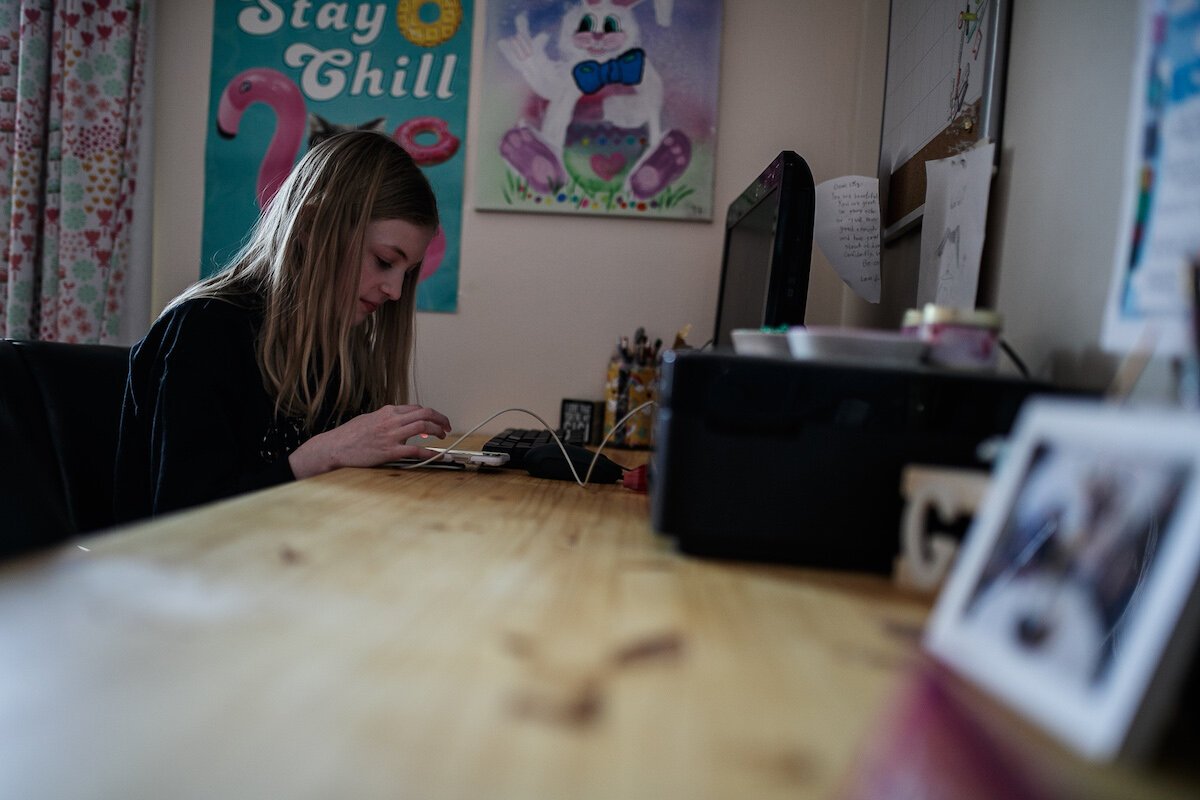 Lily Parks works at her desk.