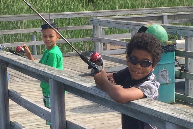 The young men were energized and back at it. Casting and reeling and talking and urging the fish to bite. One time they inadvertently crossed their fishing lines, but with advice from park staffer Montana Bishop, recovered without a snag. So, of course, they started to deliberately cross their lines and laugh—like kids do.