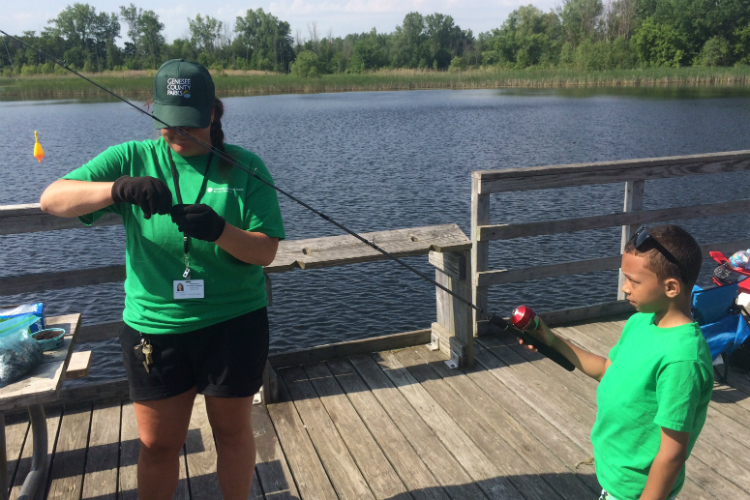 Genesee County Parks provides everything: Lakes, fishing rods, bait—even someone to put the worm on the hook (as needed).