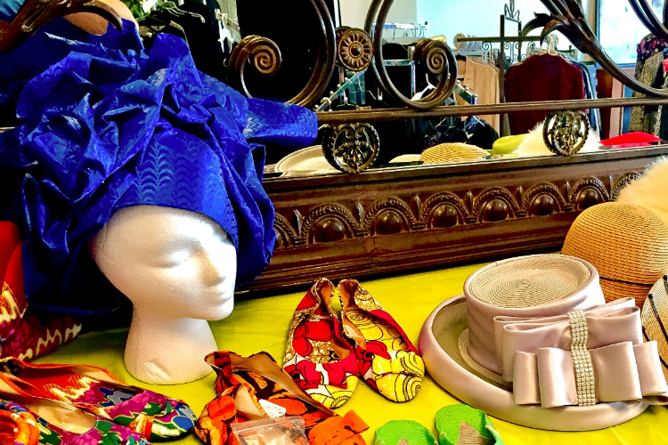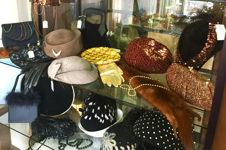 Boutique on the Bricks includes vintage hats and hat boxes from as far back as the 1920s from New York City as well as furs from Ferris Brothers Furs, DeKatch says. “And really we have just many different kinds of hats, coats and gloves, all handmade and some fine Chanel fabric pieces too.”