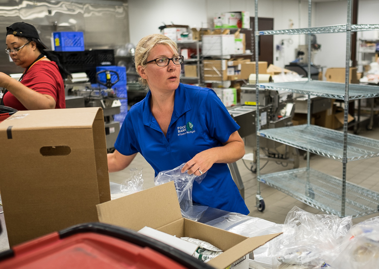 Feeding these children is part of the Summer Food Service Program funded by the USDA and the Michigan Department of Education where the Food Bank of Eastern Michigan produces about 6,000 meals per day in the kitchen at the food bank’s facility off Howard Avenue in Flint. It is a massive effort incorporating many hands and a state-of-the-art production kitchen—a kitchen that is the only one of its kind in Michigan operated by a food bank.