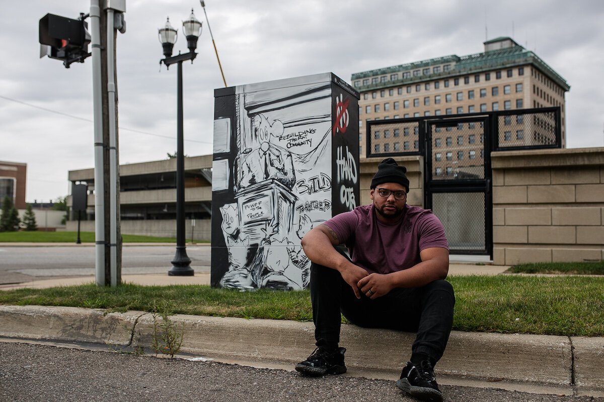 Lovett also tries to mix in cultural and social commentary into his work — an electrical box he was commissioned to paint downtown Flint near the Durant apartment building includes the message “Invest in the Northside.” The piece draws inspiration from a Malcolm X speech.