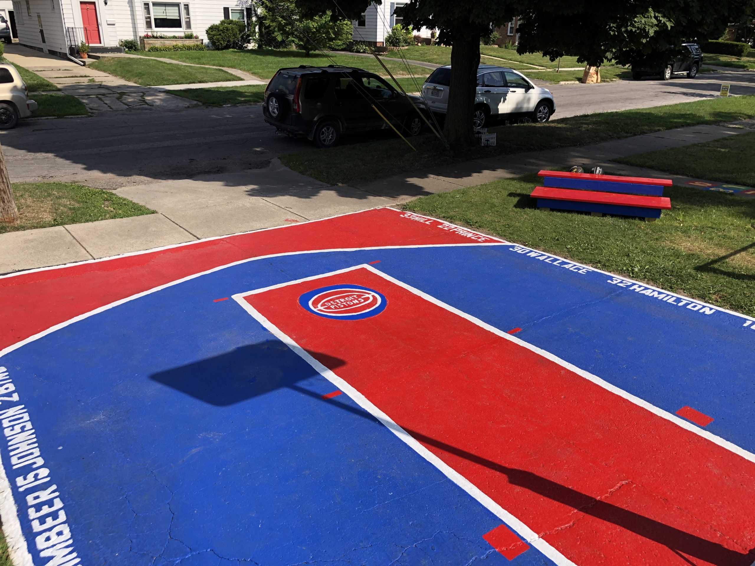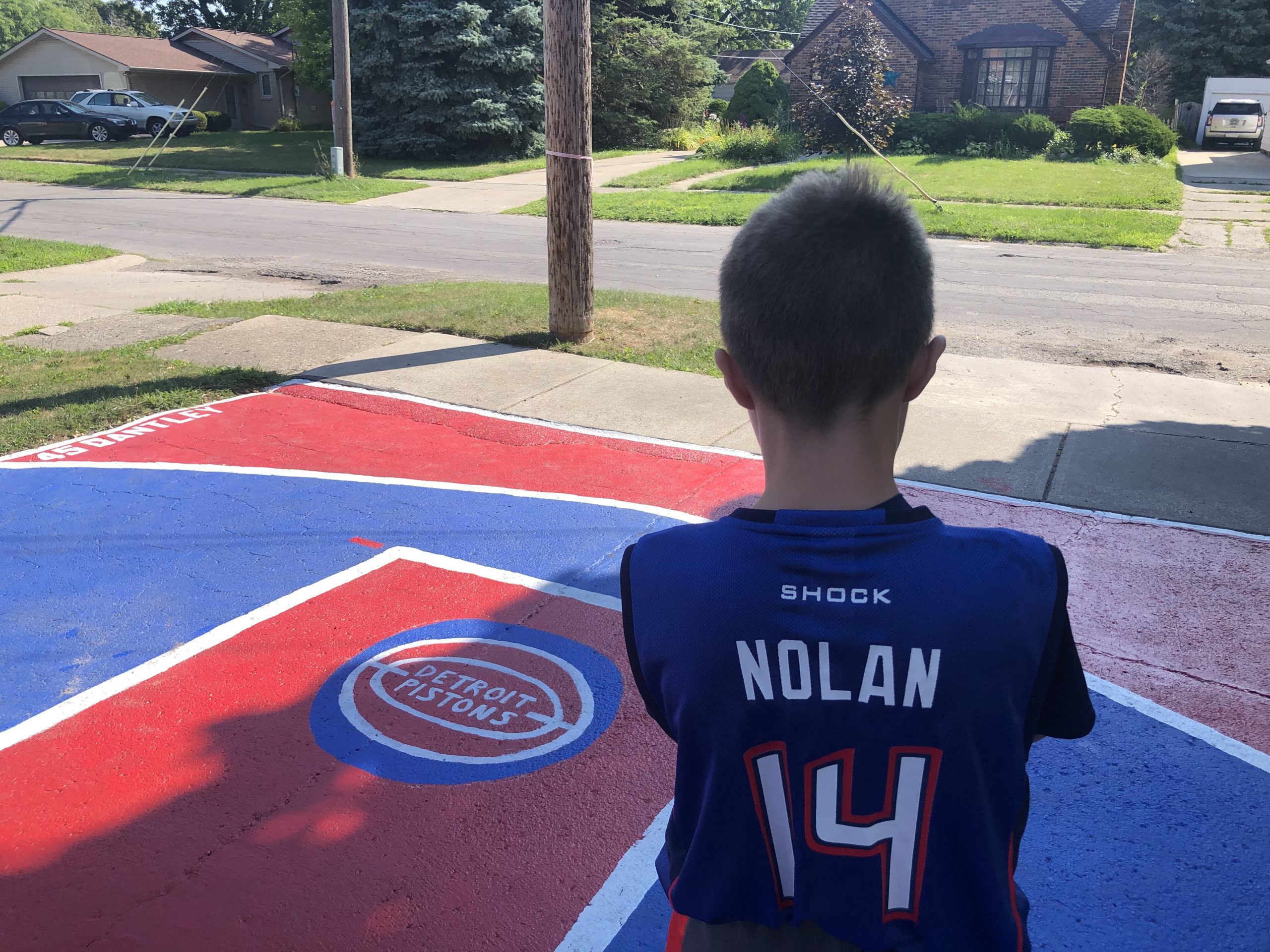 We spent time designing a driveway court, painting it in honor of the Detroit Pistons. Oliver had significant input into it. He wanted a ring of honor painted on the court to celebrate their greatest players, and actually did the research on his own. In addition to numbers the team has already retired, he presented his argument to me that he believes numbers that haven’t been officially retired by the team but deserve to be honored on our court were Rasheed Wallace, Tayshaun Prince, Grant Hill, and Adrian Dantley. It’s unreal having a 10-year-old give you a well-argued thesis on the merits of a player who last played in the 1980s, but he certainly did the homework.