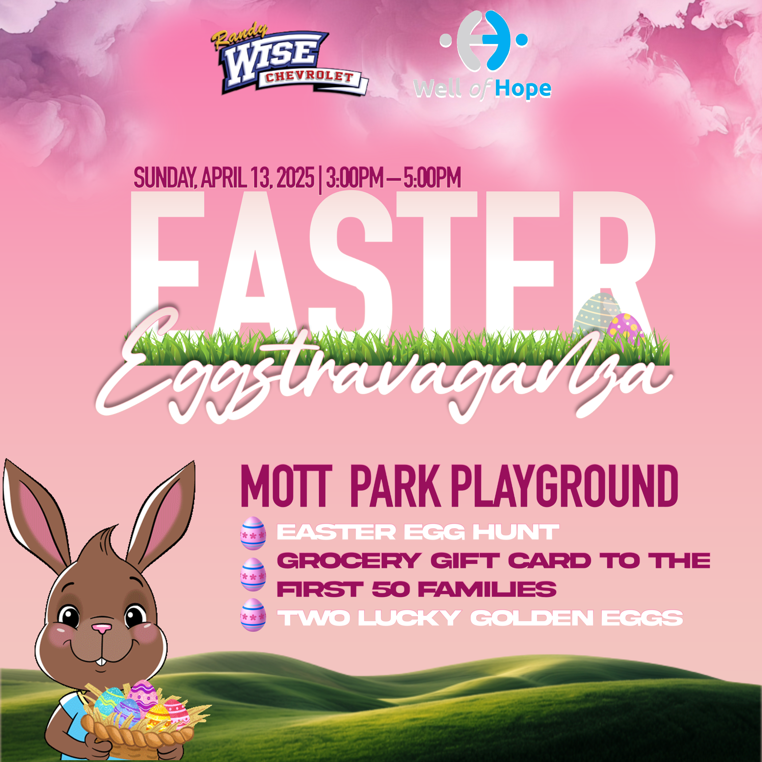 Well of Hope and Randy Wise Chevrolet are hosting a free Easter EGGstravaganza for Flint families on Sunday, April 13, from 3 to 5 p.m. at Mott Park Playground.