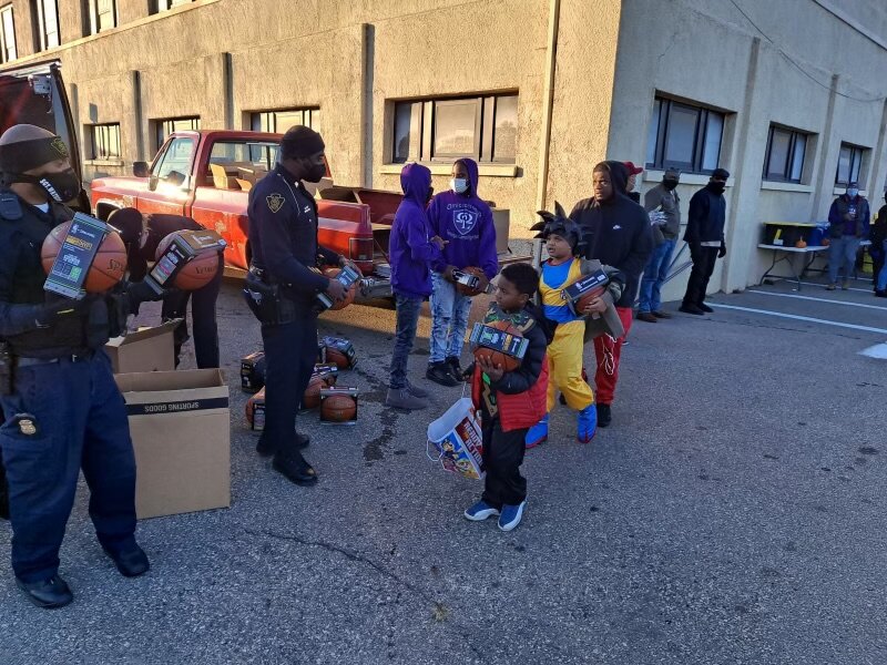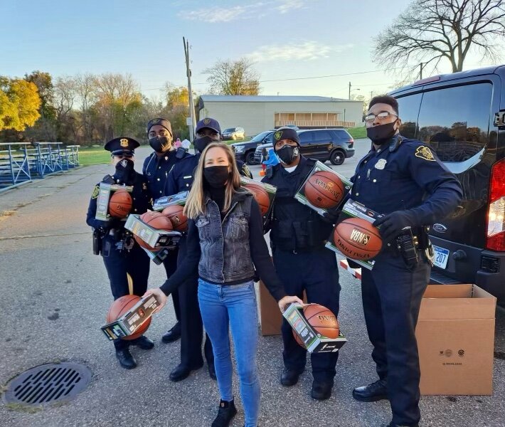 At the Berston event, Anne-Marie Blaney, a professional runner who did a personal fundraiser in September to purchase basketballs for Flint kids, teamed up with the Flint Police Department to pass them out to people in line.