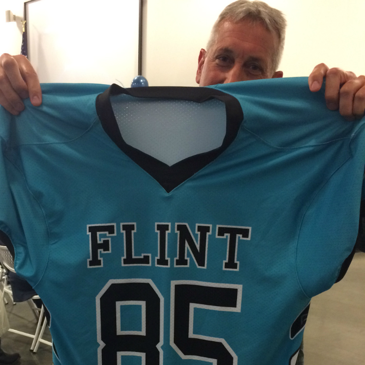 Flint Community Schools previously had unveiled an example of the new uniforms, which feature a cool teal with black letters and numbers and a simple, yet bold “Flint” printed across the front.