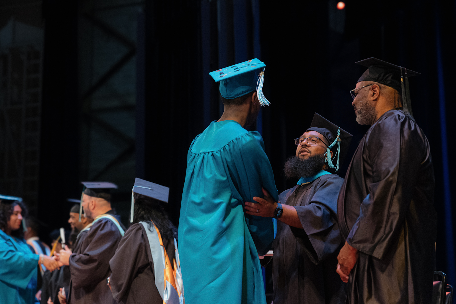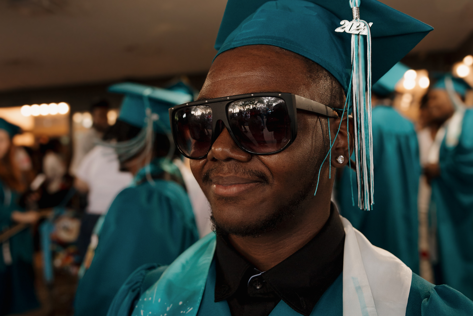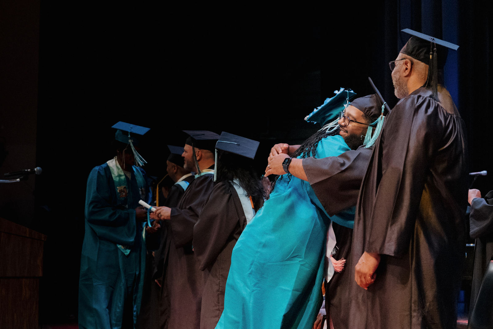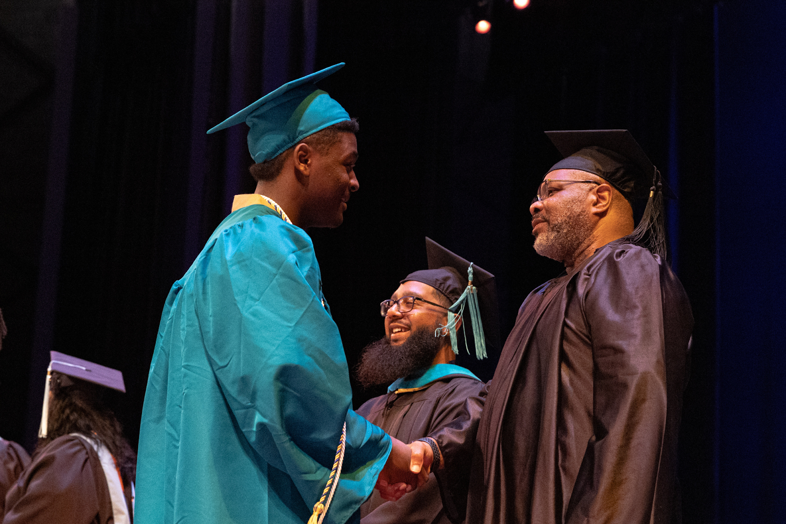 Adorned in teal-colored graduation robes, 102 students proudly received their high school diplomas. Each announcement was met with thunderous applause from a packed crowd of parents, siblings, community members, and more.