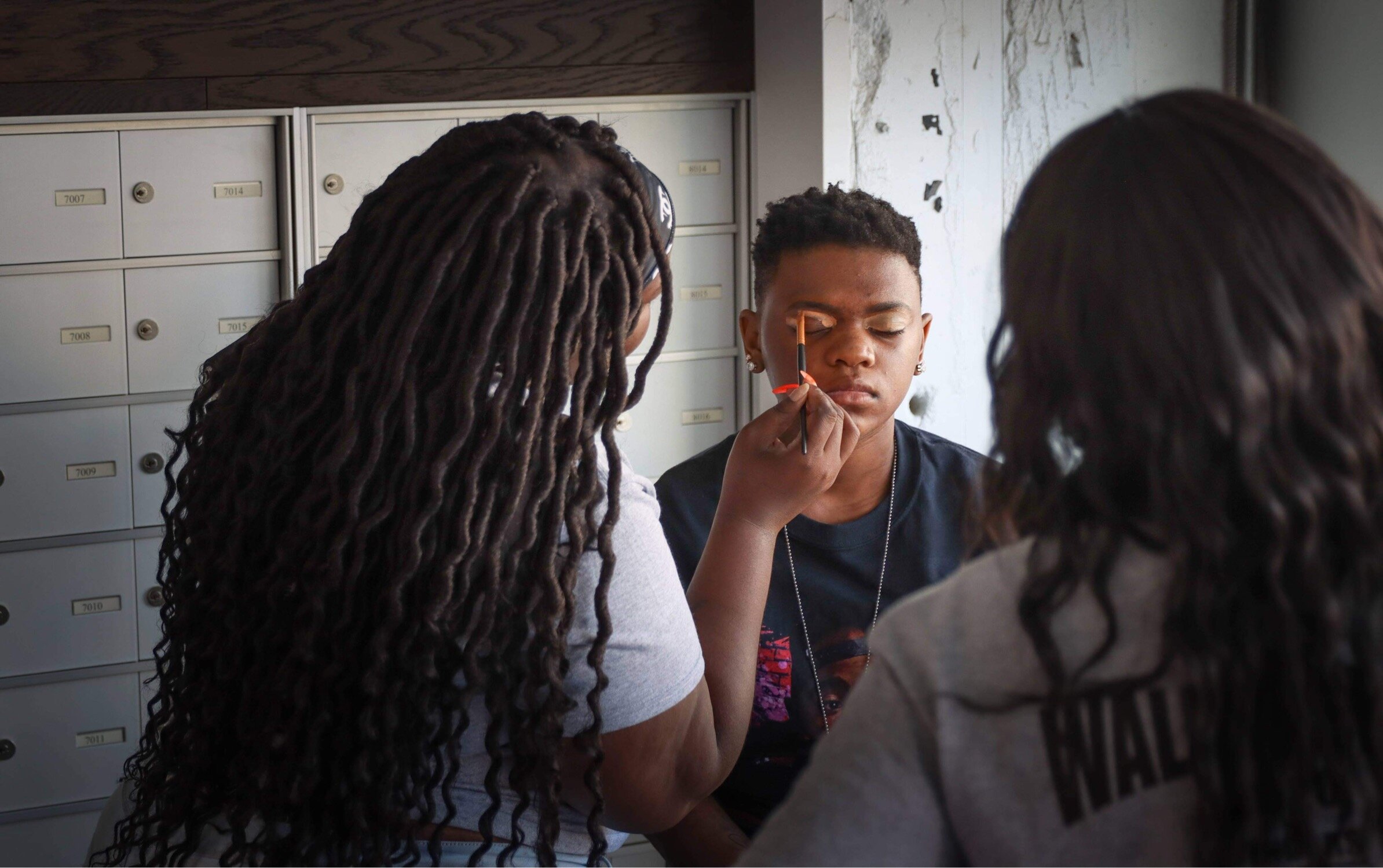 James: “We were both added to this group called Adopt-A-Senior. I put out there, ‘Hey, I’m working full time, but I’m willing to do free senior photos.’ It was an overwhelming amount of people who contacted me [and him]. I called Alvin, and we collaborated, talked, and laughed. I got five photographers, and he got five. He found a makeup artist, and I found one, and we started with that. We reached out to our photography professor Bob Rentschler at Mott Community College. He got in touch with Cannon, and they sponsor our event and send us camera equipment for the photographers. We had four clothing lines donate, and we had Luigi’s sponsor and fed everyone. Alvin hooked up with the Greater Flint Arts Council and Ferris Wheel to let us utilize their space.”