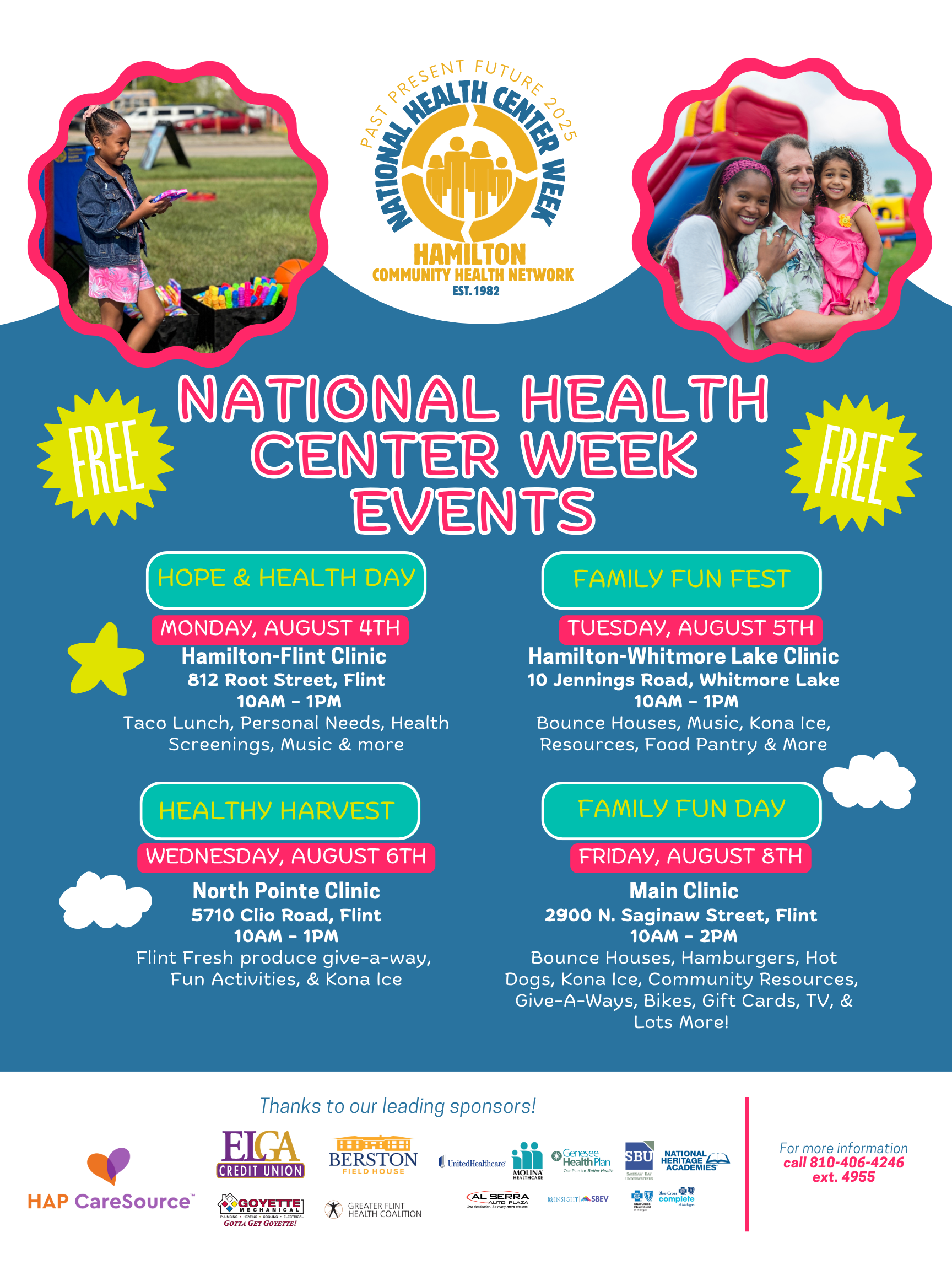 Rounding out the celebration is the biggest event of the week, which is Family Fun Day on Friday, Aug. 8, from 10 a.m. to 2 p.m. at Hamilton’s Main Clinic, located at 2900 N. Saginaw St.
