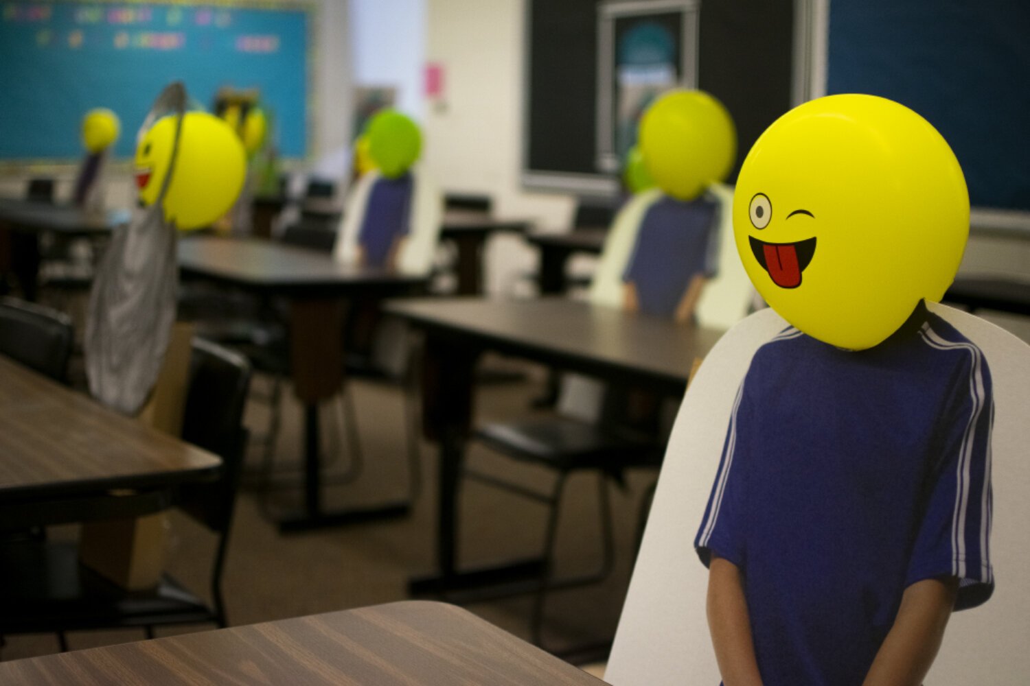 According to Olayinka, the cutouts allow her to focus in on what she’s doing. Just like with her students, she finds it hard to stare at the screen for hours on end. Now at least, she can glance up from time to time and see emoji faces smiling, winking, and sticking their tongues at her. Just like a regular day at school.