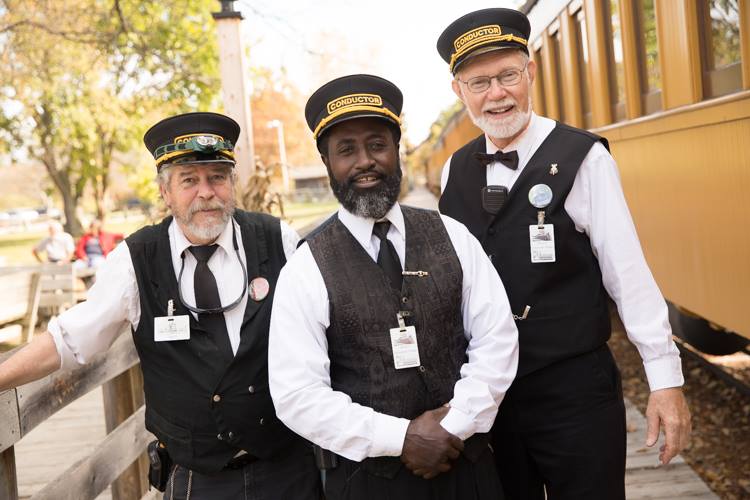 On workdays, Coleman wakes up and dons his conductor’s uniform. As he gets dressed, he goes over safety checks in his mind. Arriving at Crossroads Village, Coleman joins other conductors and brakemen to complete inspections on brakes, the angle cocks providing air flow to the brakes, the cords that connect the sound for narration, and the couplings between cars. “I check that train three or four times before we connect and once or twice while we connect,” he says.