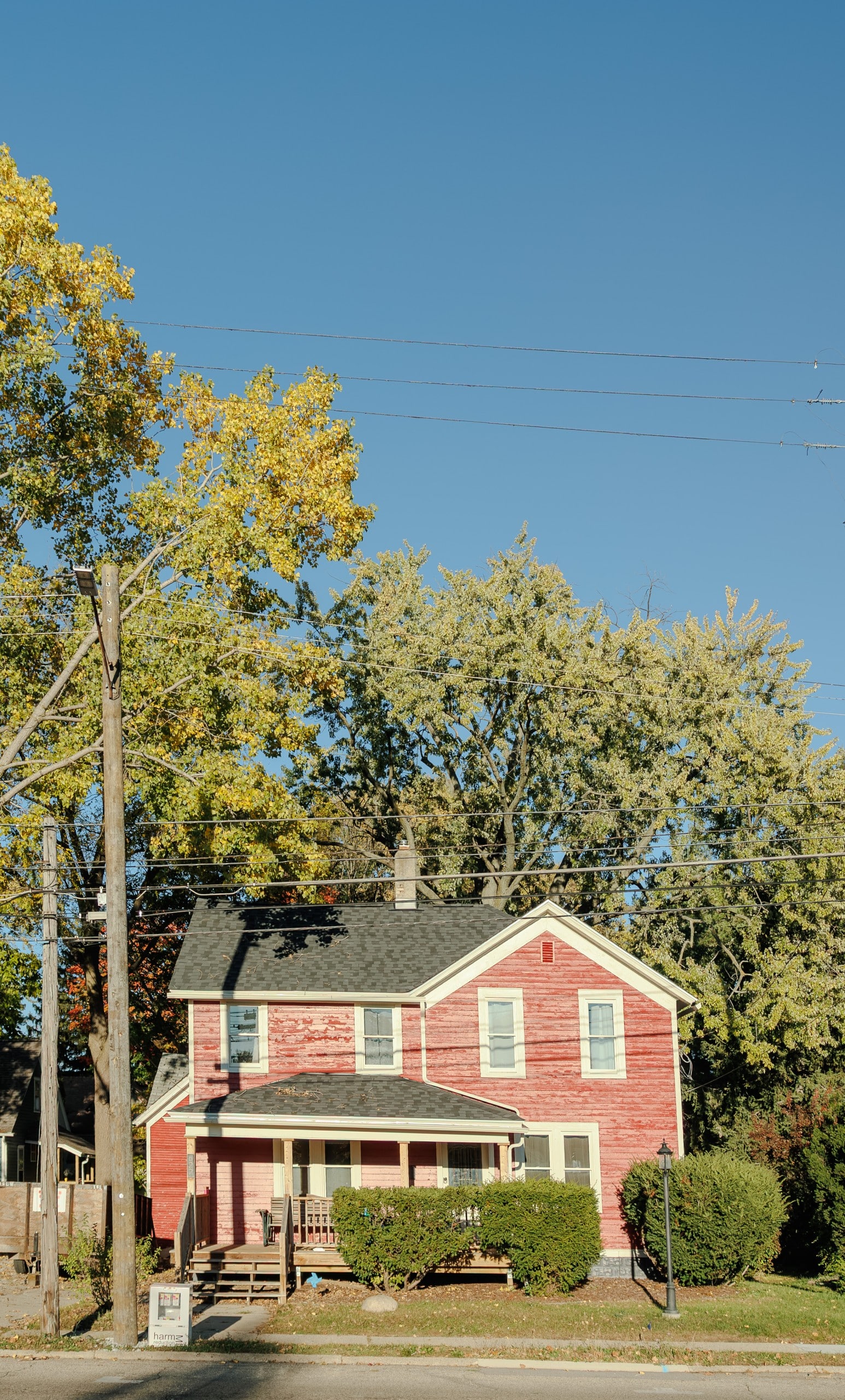 A weathered red house stands quietly under a bright autumn sky on Sunday Oct. 19, 2025. Anthony Summers | Flintside