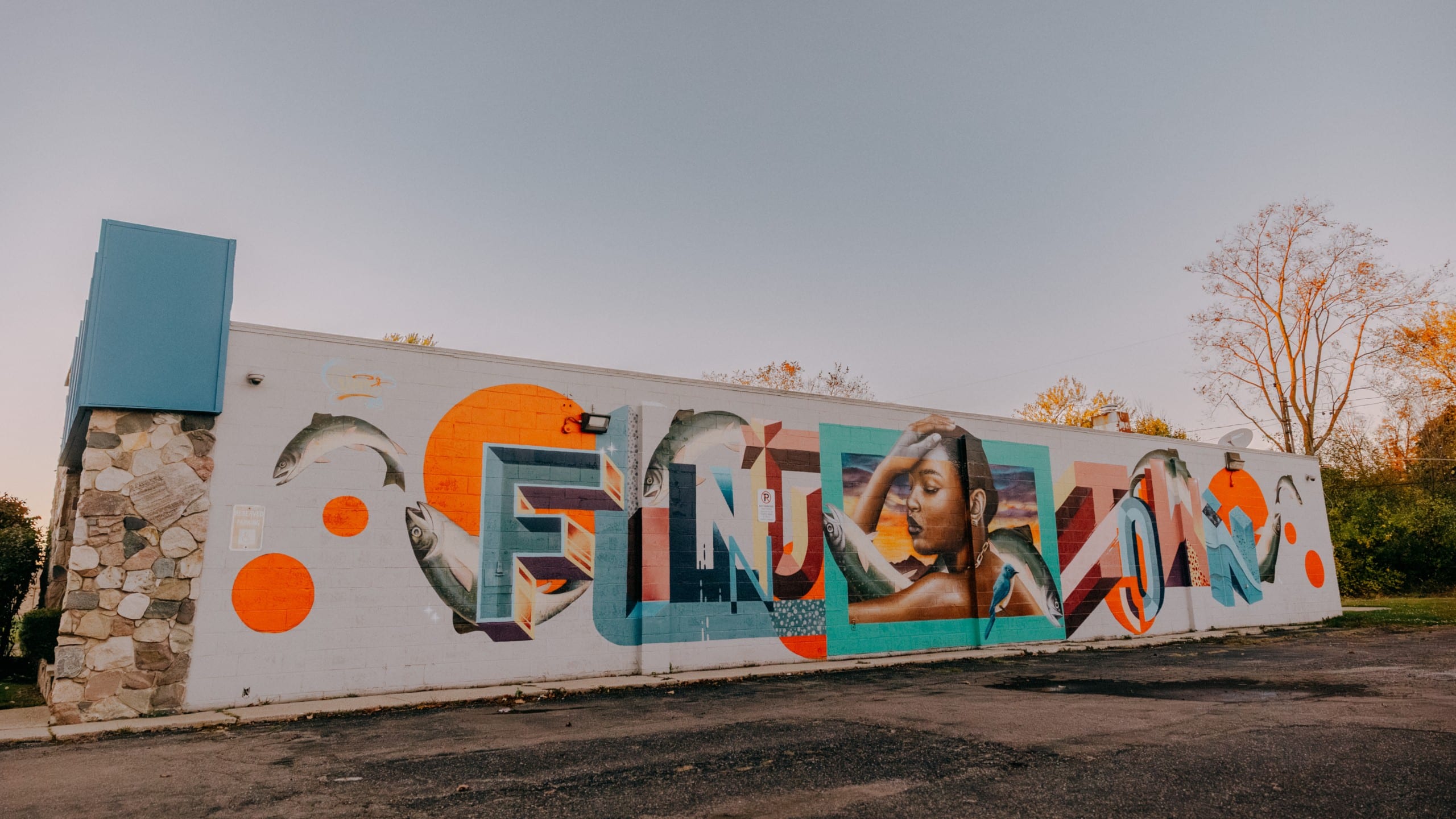 And in the middle of it all, art blooms—a mural that spells FLINT in color and portraiture, a living ode to Blackness, softness, beauty, and hometown pride. The wall reads like a love letter from the city, and if you slow down, you can feel it.