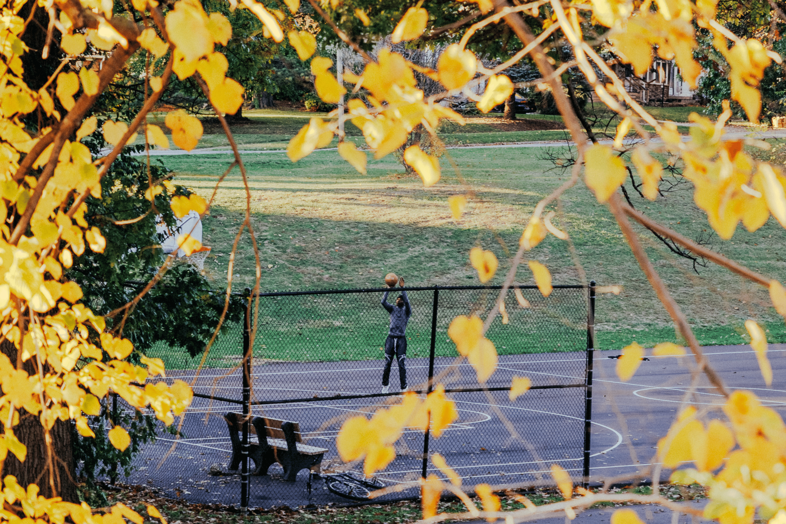 Between the foliage sits a young man shooting hoops alone on Sunday Oct. 19, 2025. Anthony Summers | Flintside