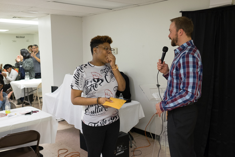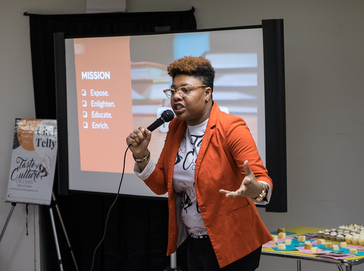 Presenting at Flint SOUP’s January meeting at Church of the Harvest International, Campbell tells a room full of strangers about her life dreams and about her budding business, Chef Telly.