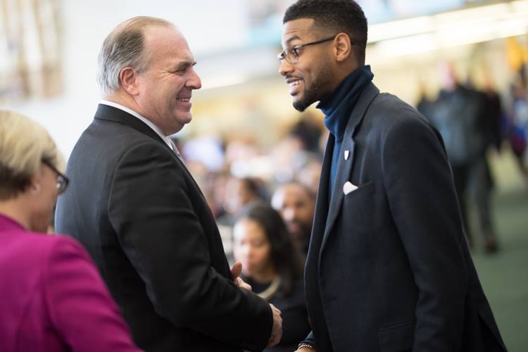 The second year away, things were different. The second year he joined Alpha Phi Alpha fraternity. The second year, he and other fraternity brothers went all over campus doing popup recitals of King’s “Dream” speech to make sure campus and students recognized Martin Luther King Day. The second year, he was one of a group of students who asked the university president to set aside MLK Day as a day of service and cancel classes to allow students the opportunity to honor the day. The second year, he helped gather every black fraternity, sorority, and campus organization to support the effort—and he also went to key student leaders outside the tight-knit, and very small, black campus community. “The allies are important,” Oliver says as he drives toward his third MLK event of the day.