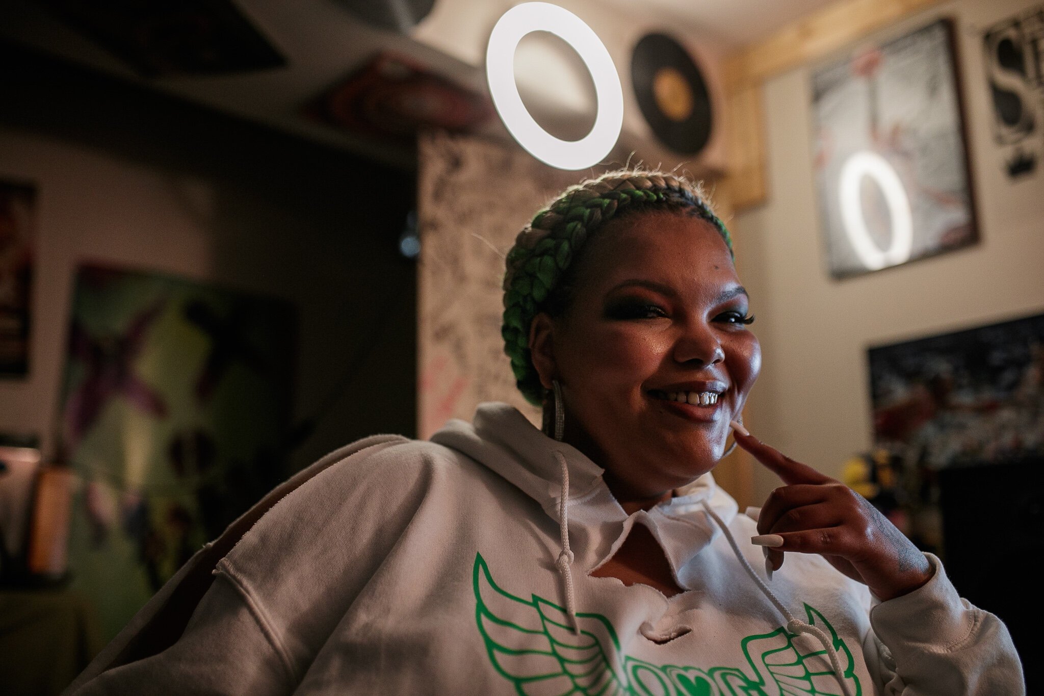 Smok3zz: “Being a mom is the hardest, most wonderful job I’ve ever had. I love them to the moon and back. I couldn’t tell you what I would be doing if I didn’t have my kids. I wasn’t as motivated as when I realized I had little people watching everything I was doing. The pandemic showed me something different. I was a frontline worker, lost my job, then boom back to work at the drop of a dime. I was gone seven days a week when I went back to work, and then I lost my job [again]. It taught me everything. I was like, I’m going to put myself into what I love to do. I’m trying to live my truth so that when they get older, they can too.”