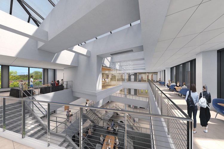 Kettering University's Learning Commons, slated to be completed by early 2022, will be home to a digital library, dining area, and media resource centers. In combination with a design and entrepreneur lab, the space will feature student worker spaces with an emphasis on mobility and artificial intelligence.