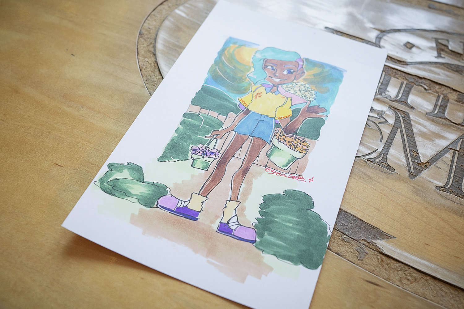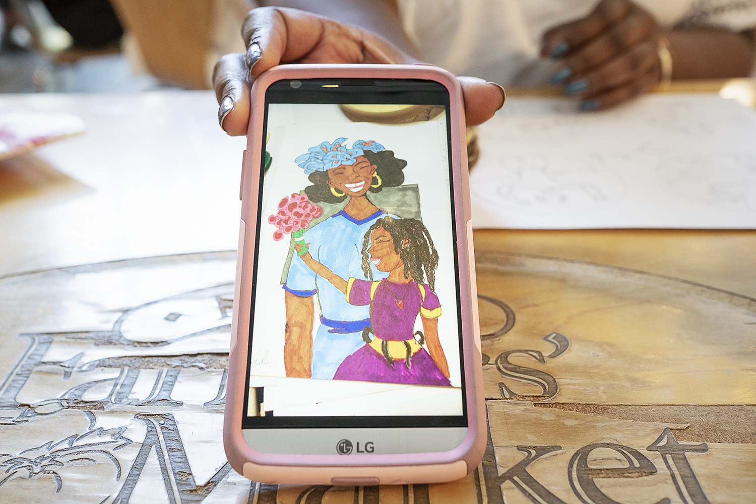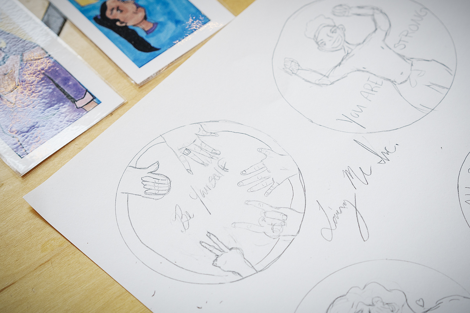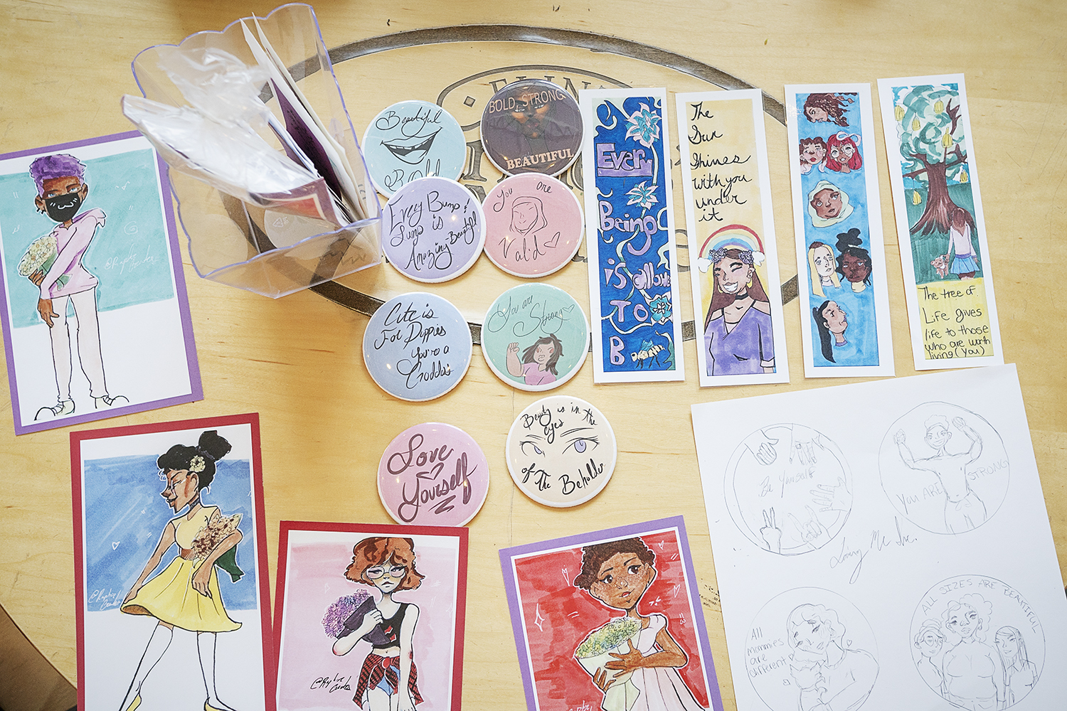 The teens are the creators of Loving Me Inc., a business designed to promote positivity, spread joy and bolster confidence. The accessories and postcards feature the teens’ hand-drawn artwork of people with varying ethnicities, cultures and body types paired with messages such as, “The sun shines with you under it,” “Bold, strong beautiful,” and “Love yourself.”