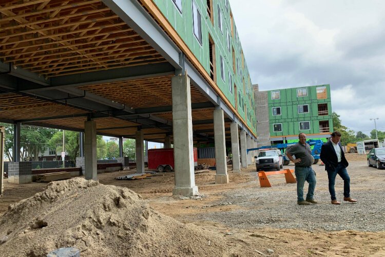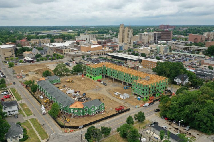 Construction on the $19.6 million project is scheduled for completion at the end of this year with residents moving in at the start of 2020. The complex includes 92 apartments and townhouses that take up an entire downtown block between Third and Fourth streets and Stevens and Wallenberg streets.
