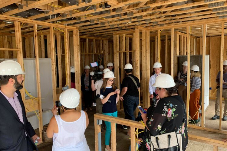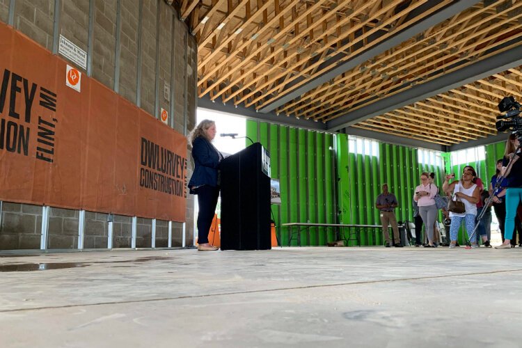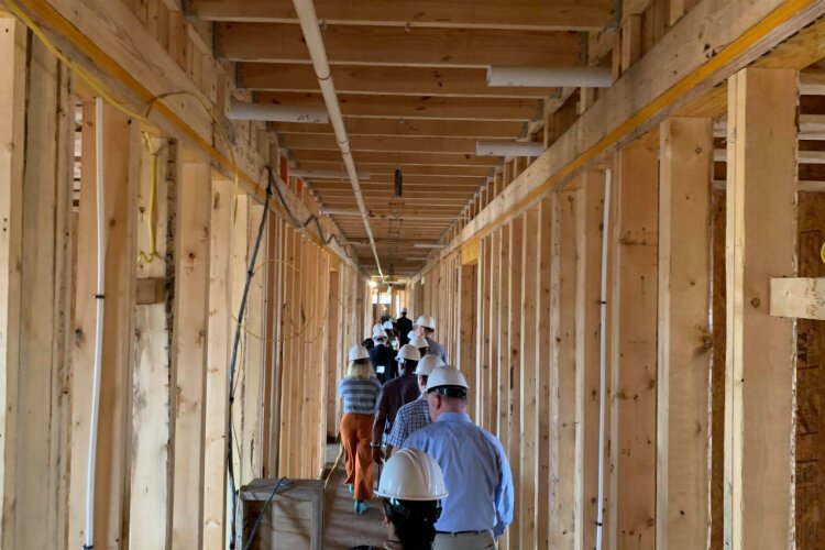 Officials hosted a hard hat tour of the construction site to give a sneak peek at the development project aimed at continuing the economic revitalization of downtown Flint.