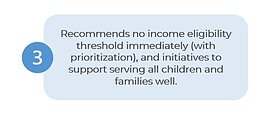 Para lograr ese objetivo, la Hoja de Ruta recomienda garantizar que más proveedores comunitarios puedan acceder a la financiación y crear un programa piloto de proveedores de educación temprana a domicilio que permita a los actuales profesionales a domicilio una nueva vía para participar en el programa PreK para todos.