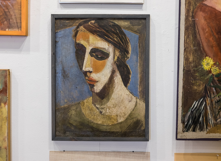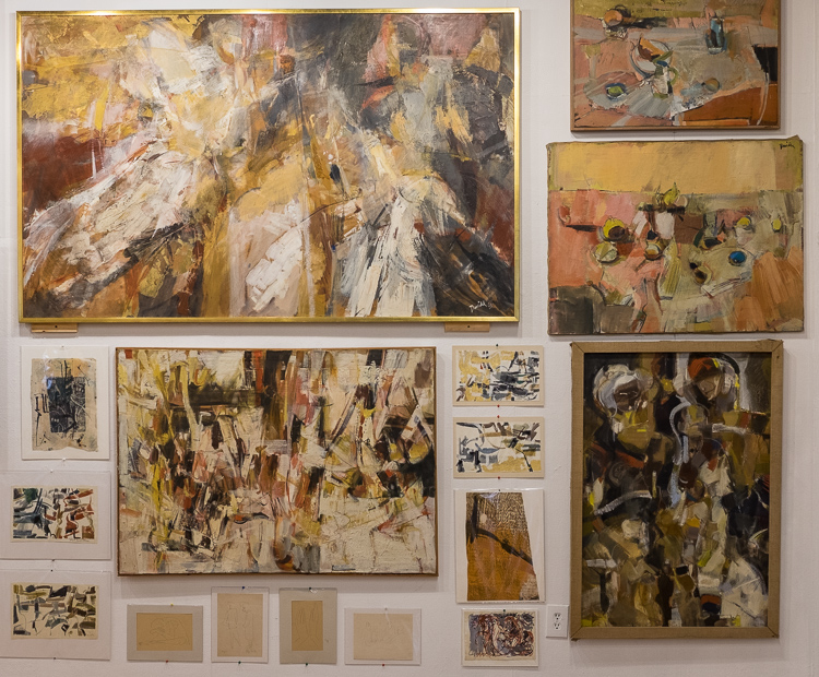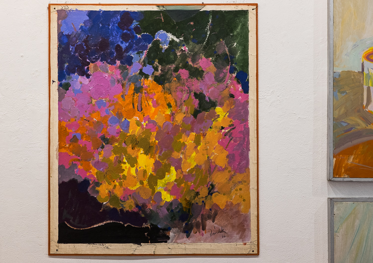 Much of what the viewer will see in this exhibition at Buckham Gallery in Flint is work Davidek would sit down to in the evenings after a day applying paint to walls. Before now, some of it may never have been seen except by the eyes of the family, still wet on the easel. Some pieces have been rescued from storage in various locations, a barn and even the trash, the canvas now stretched over a frame to become part of this revelation of his life’s work.