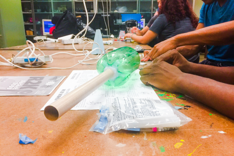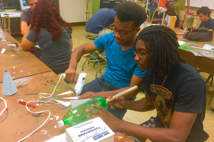 The amalgam of plastic bottles, ping-pong balls, cardboard cylinders, and hot glue soon will be transformed into rockets. The real mission here is far bigger, though: It is to launch these young minds into the study of STEM fields and eventually into stratospheric career opportunities.