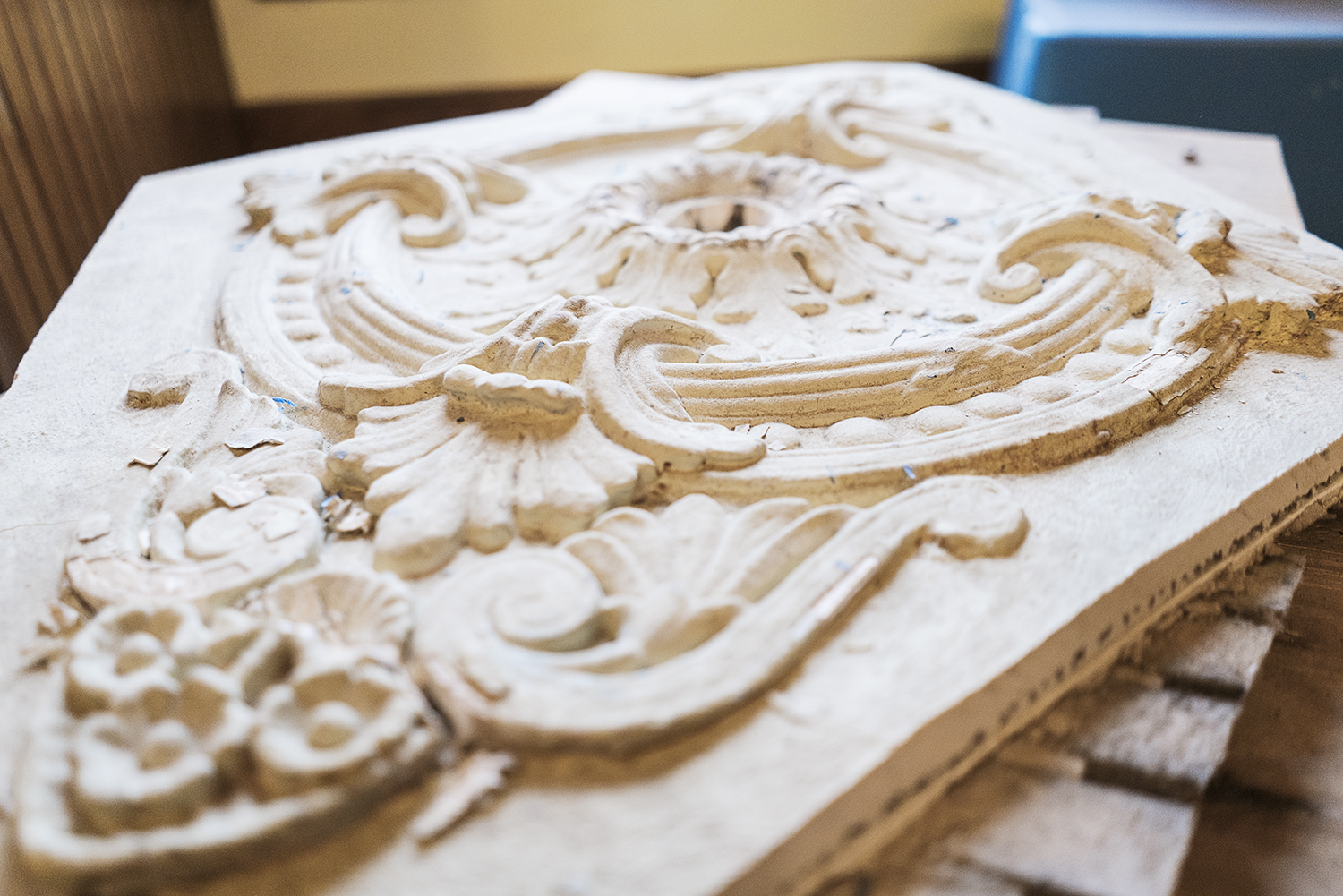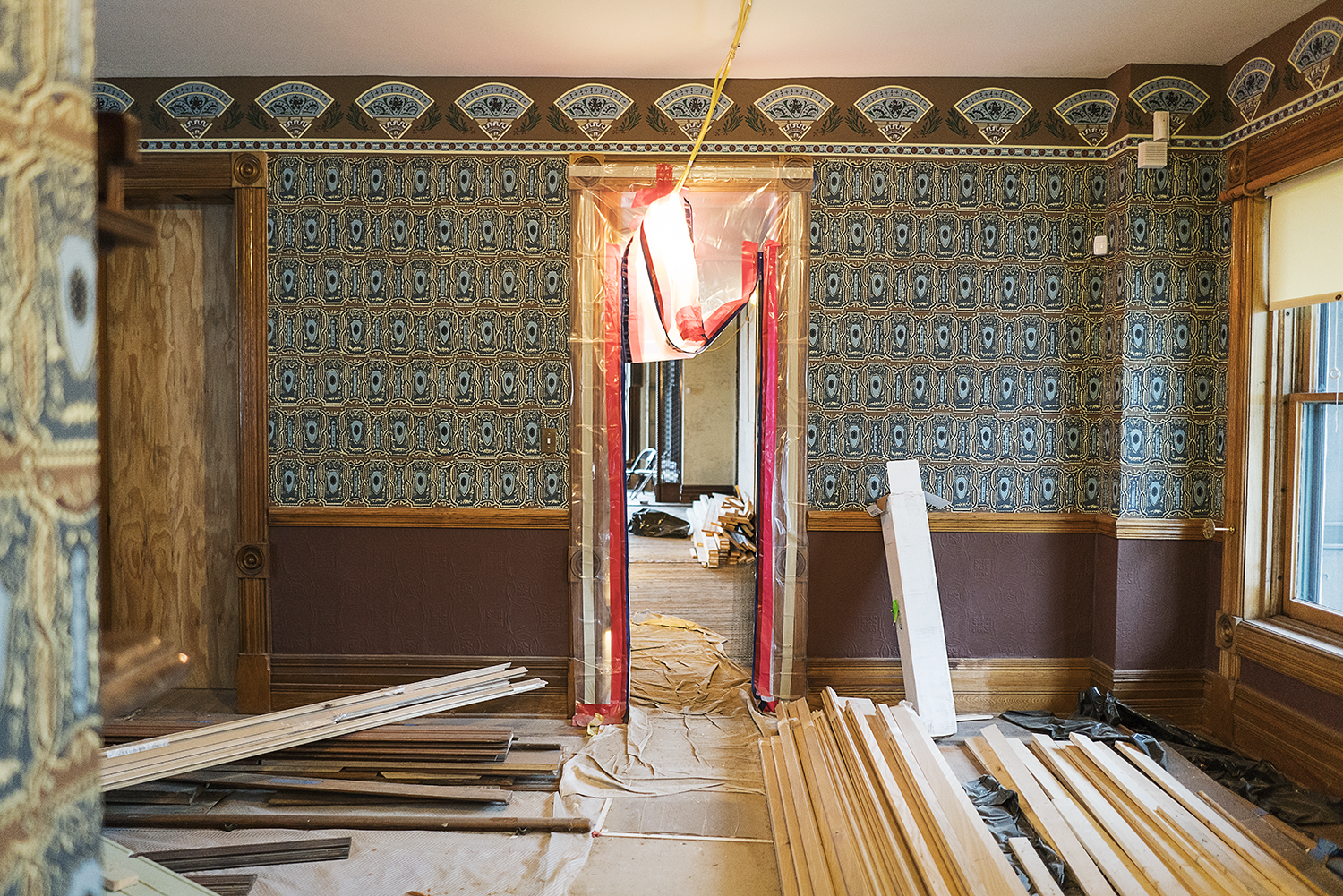 His career has mainly focused on custom frames and shelving requiring significant detail. Not having worked on a large amount of restoration, he “loves the challenge” that the restorative process provides. He has been working mainly on the finish carpentry, trimming windows, stairways and walls in preparation for the reopening.